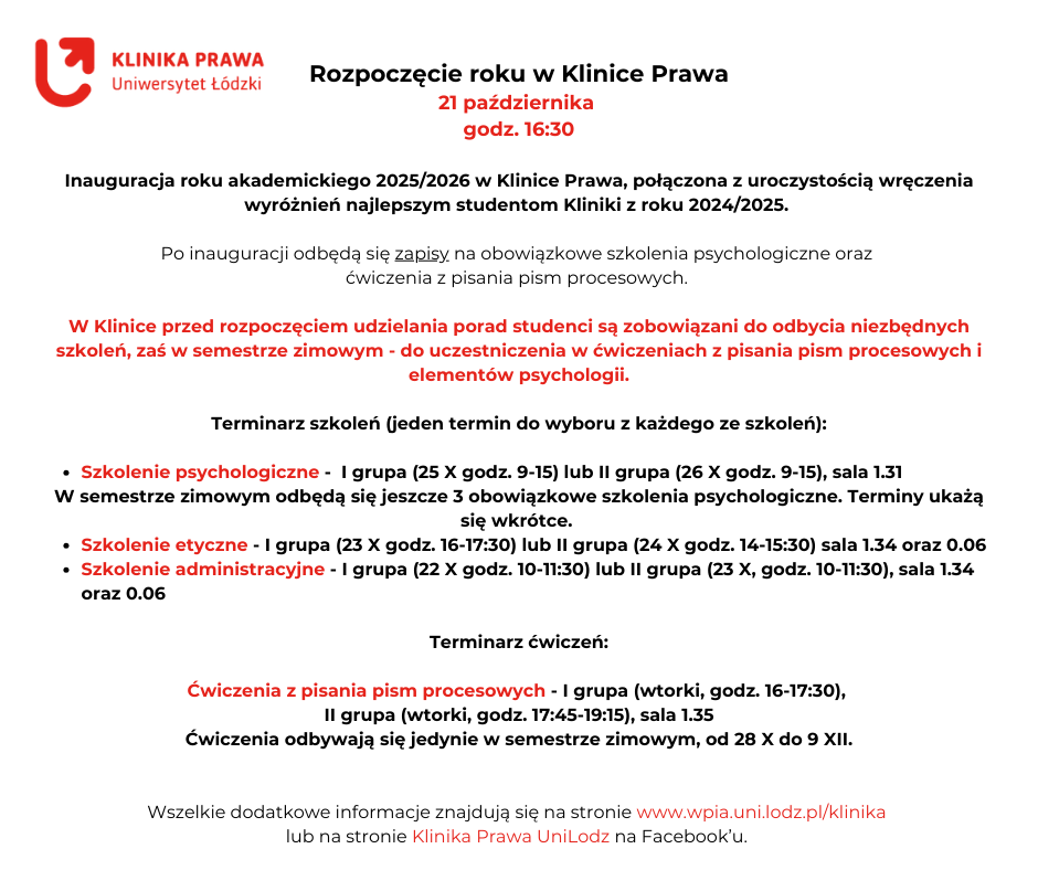 Zasady pracy Kliniki Prawa określa Regulamin.