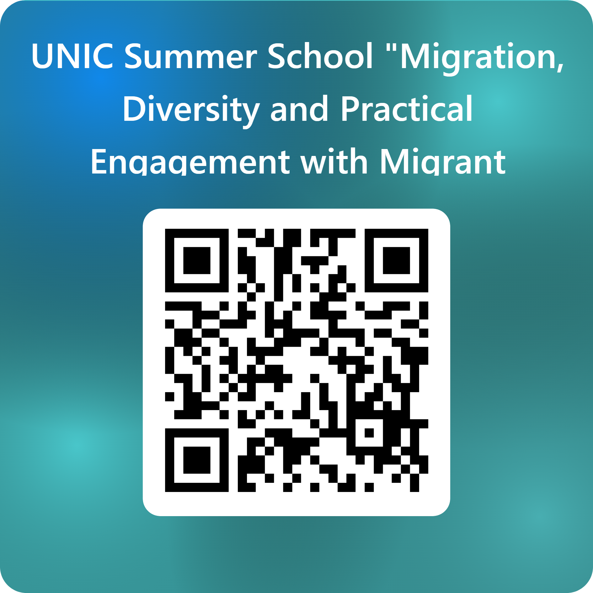 The Summer School recruitment has started! To take part, please fill in the application form: UNIC Summer School “Migration, Diversity and Practical Engagement with Migrant Communities” or by scanning the QR code: